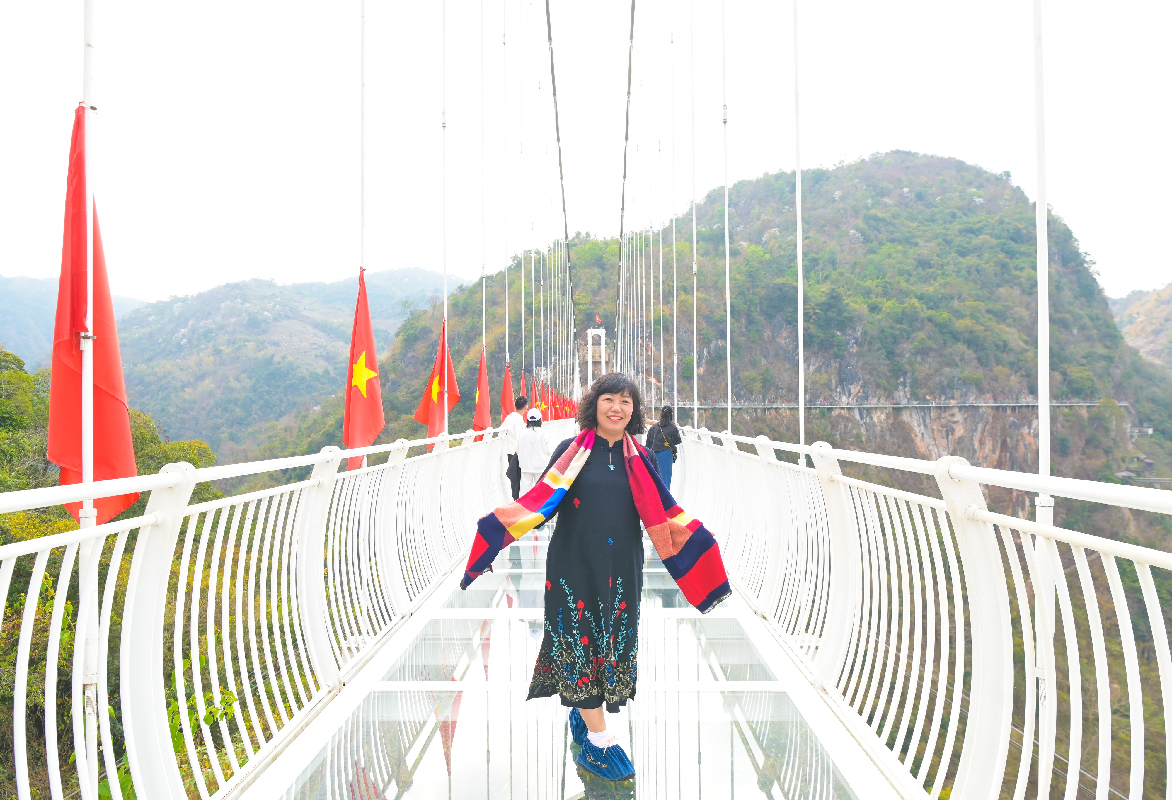 Các nữ cán bộ, công nhân viên chụp ảnh lưu niệm tại Cầu Kính Bạch Long được Tổ chức Kỷ lục Guinness thế giới trao chứng nhận là cầu kính đi bộ dài nhất thế giới.Trong khuôn khổ chương trình, các nữ cán bộ nhân viên đã tham gia nhiều hoạt động tham quan, trải nghiệm tại những địa điểm nổi tiếng của vùng Tây Bắc.