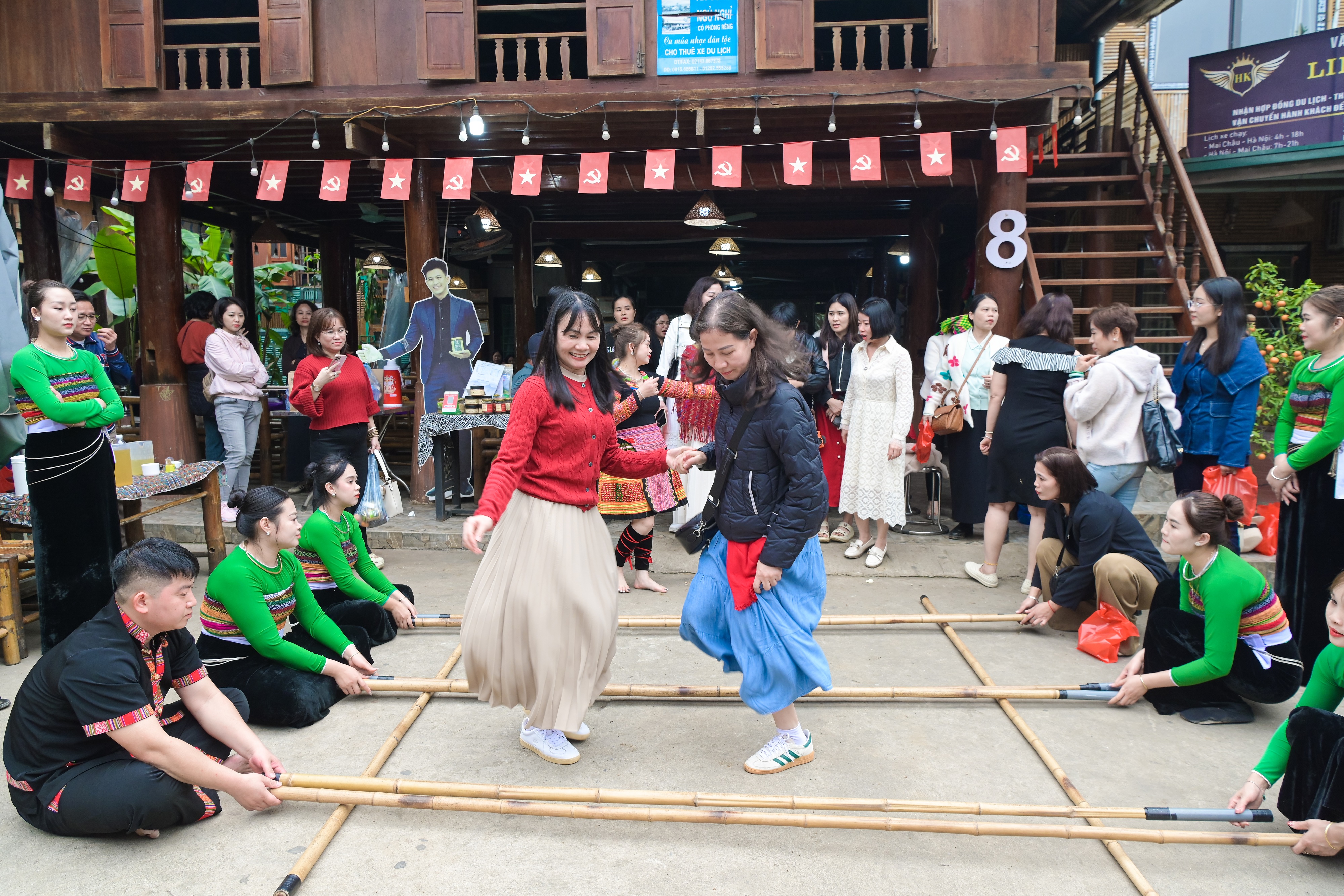 Bên cạnh đó, đoàn cũng tham quan Bản Lác – ngôi làng du lịch cộng đồng nổi tiếng của đồng bào dân tộc Thái tại Mai Châu, tỉnh Phú Thọ. Tại đây, các nữ cán bộ, công nhân viên được tìm hiểu về đời sống sinh hoạt, phong tục tập quán và những giá trị văn hóa truyền thống của người dân địa phương.
