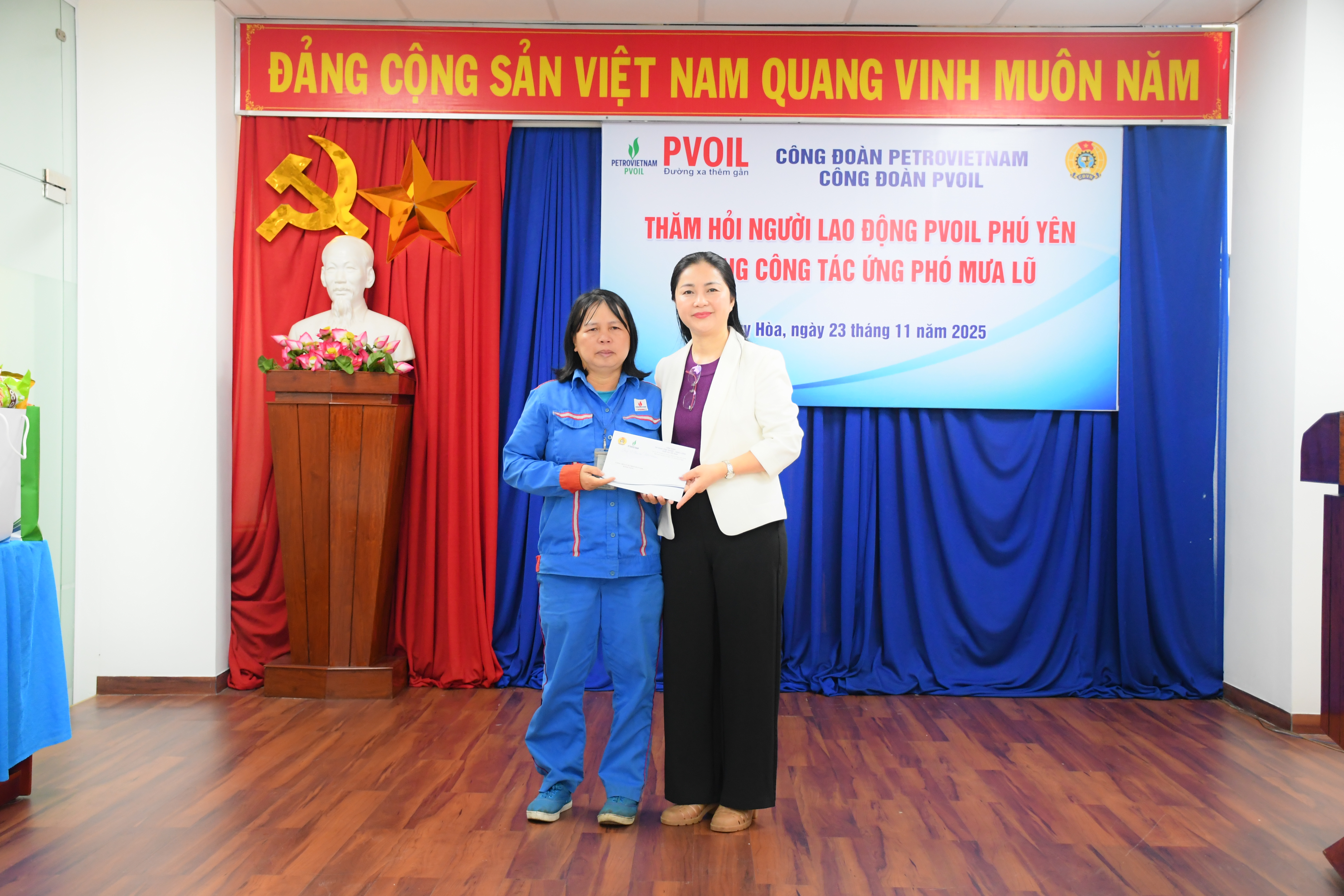 The Petrovietnam Trade Union and the PVOIL Trade Union jointly presented gifts to PVOIL Phu Yen staff members for their courageous acts of rescuing people during floods.