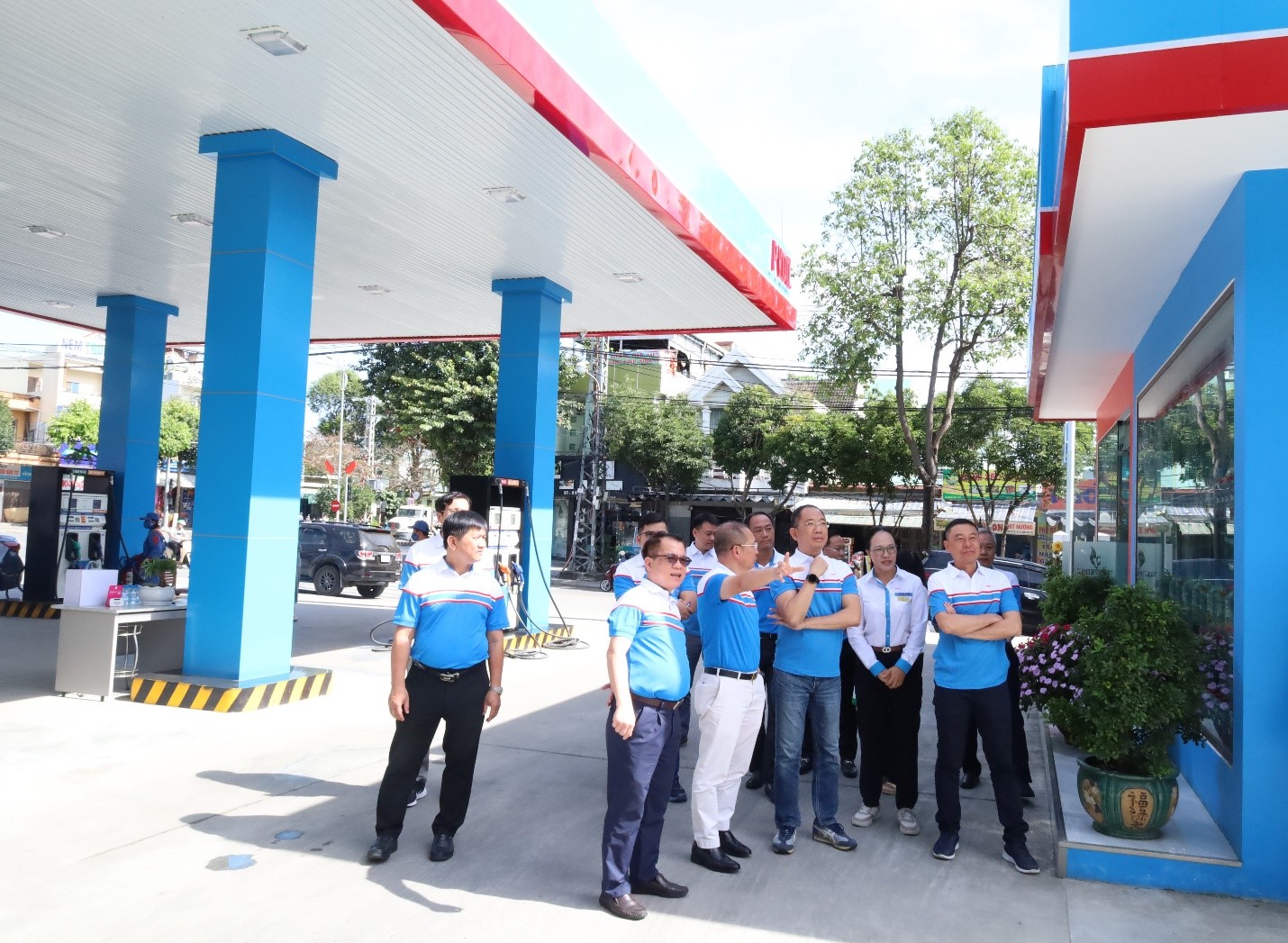 Lãnh đạo Tổng công ty kiểm tra, giám sát hoạt động bán hàng tại CHXD Khuê Trung, TP. Đà Nẵng.