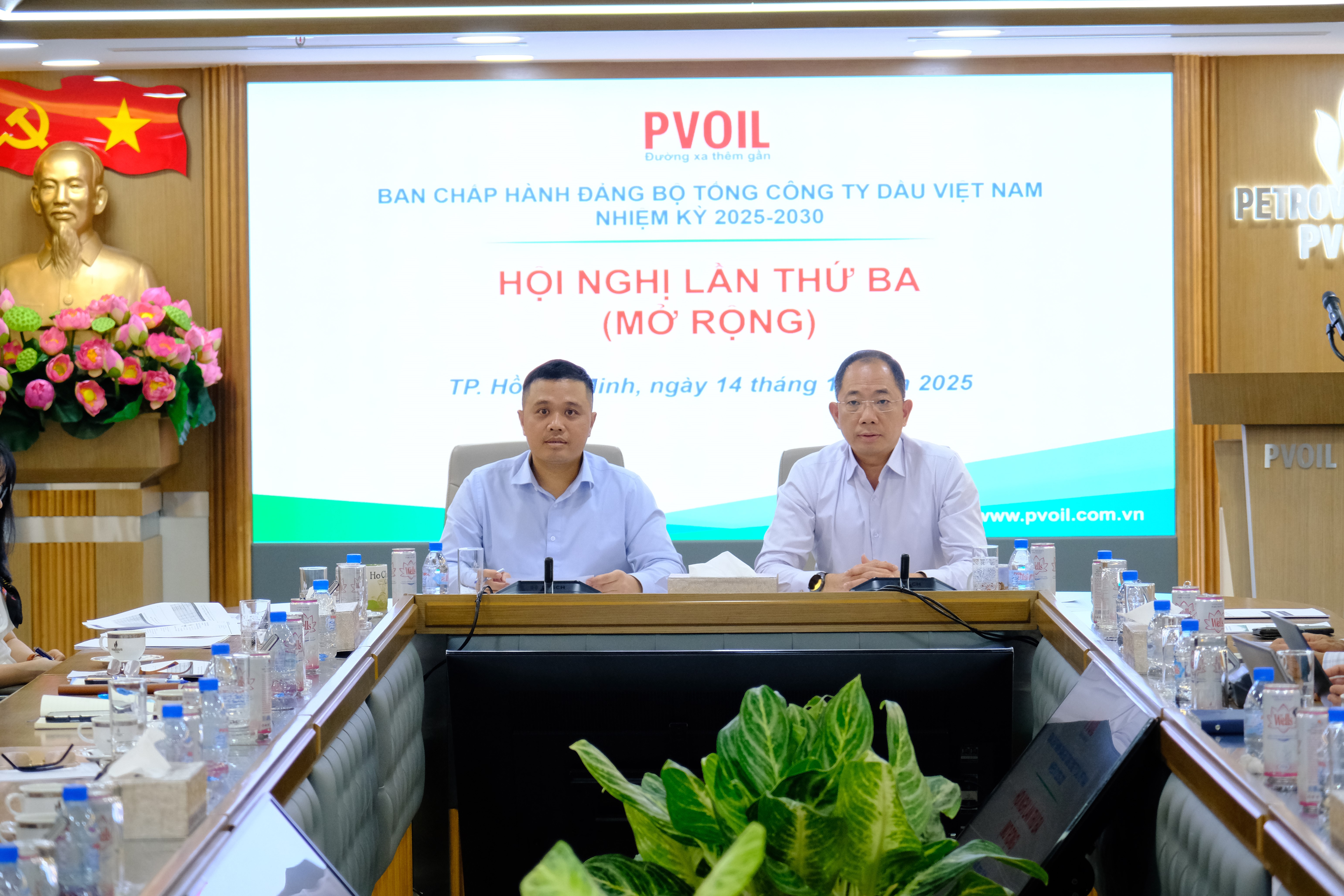 Ngày 14/10/2025, tại TP Hồ Chí Minh, Đảng bộ Tổng công ty Dầu Việt Nam (PVOIL) tổ chức Hội nghị Ban Chấp hành lần thứ ba (mở rộng) nhằm sơ kết công tác Đảng và hoạt động sản xuất kinh doanh 9 tháng đầu năm 2025.