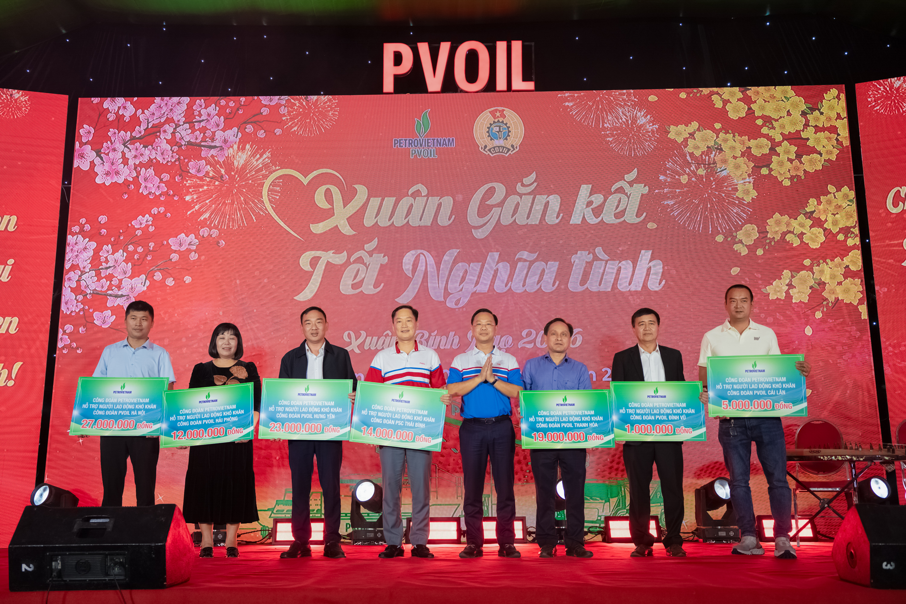 Tại buổi gặp mặt, Ban tổ chức đã trực tiếp trao các suất hỗ trợ từ Công đoàn Petrovietnam tới những người lao động có hoàn cảnh khó khăn. Bên cạnh đó, Ban lãnh đạo và Công đoàn PVOIL cũng trao quà Tết tới các cửa hàng xăng dầu, kho xăng dầu và đội vận tải đang ngày đêm bảo đảm hoạt động sản xuất kinh doanh; trao những bao lì xì đỏ thắm, gửi gắm lời chúc năm mới an khang, thịnh vượng, hạnh phúc và thành công tới từng cán bộ, công nhân viên, người lao động.