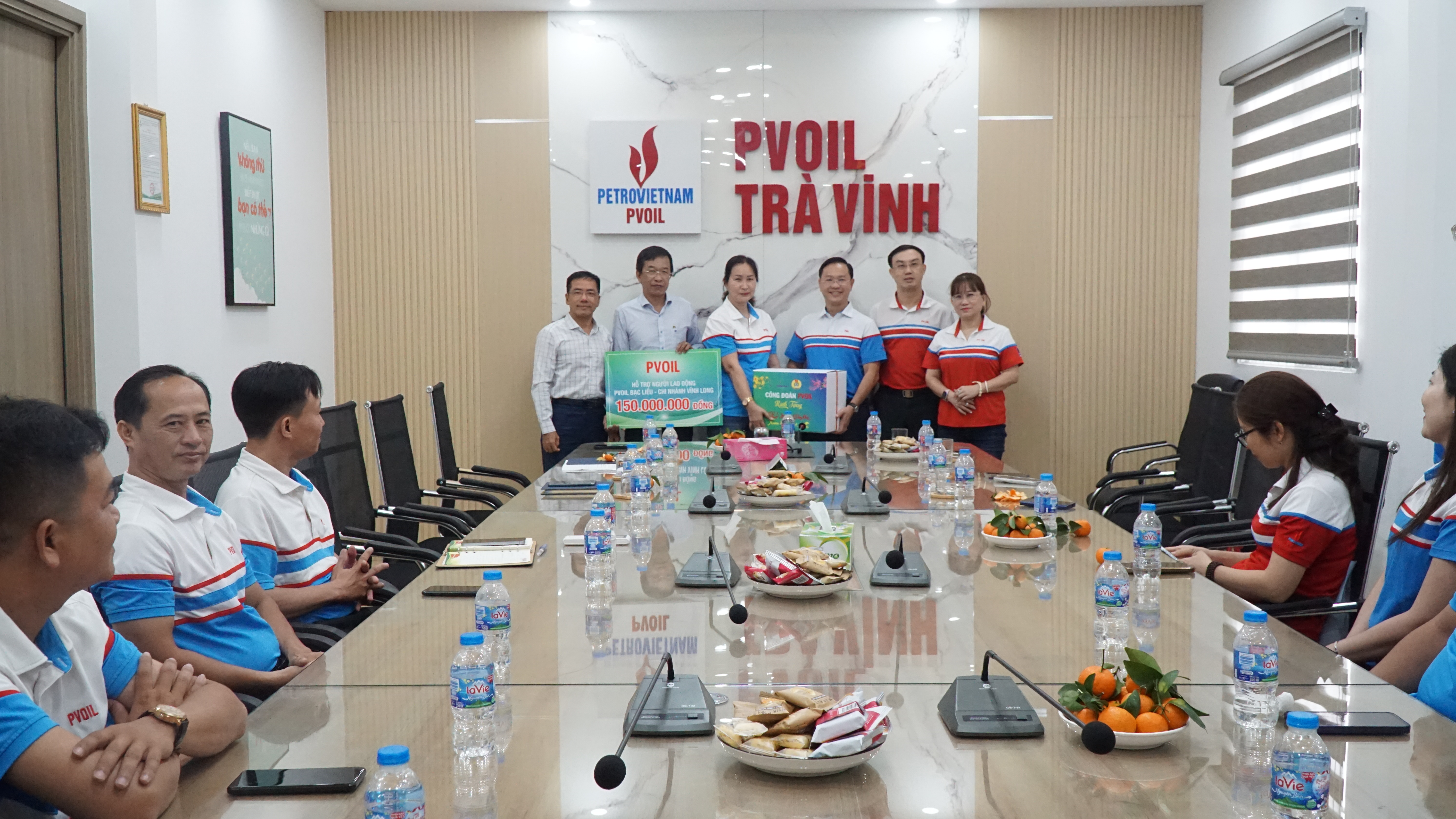 Nhân dịp này, Lãnh đạo và Công đoàn PVOIL trao số tiền hỗ trợ 150 triệu đồng để tặng quà Tết cho tất cả người lao động của Chi nhánh Vĩnh Long – PVOIL Bạc Liêu. Đây là tình cảm và sự sẻ chia của Ban Lãnh đạo và Công đoàn Tổng công ty; là nguồn động viên tinh thần to lớn để người lao động của đơn vị vững tin bước vào giai đoạn phát triển mới.